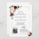 Design elegante com burgundy de aquarela, flores cor-de-rosa, folhas verdes, eucalipto, quadro rosa de ouro com confete, código QR para que seus hóspedes possam RSVP e encontrar todos os detalhes online, caligrafia moderna, nas iniciais traseiras e na coroa floral. Use a ferramenta Personalizar para adicionar suas informações. Itens correspondentes podem ser encontrados em minha coleção de casamento de código QR.
