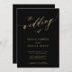 Convite Código QR casamento romântico elegante de ouro neg
