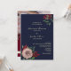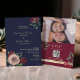 Celebre sua casamento outono com este marinho elegante e convite de casamento burgundy com flores de aquarela em blush, burgundy e marfim com folhagem verde. A frente destaca seus detalhes de casamento com um roteiro inspirado no ouro, enquanto a parte de trás inclui uma foto pessoal do casal e um conveniente código QR para RSVP e informações do site de casamento. Perfeito para casais modernos que querem beleza e praticidade em suas estacionamentos. Ideal para casamentos no outono, este convite combina romance com funcionalidade. Cartões RSVP correspondentes, cartões de detalhes, salvas as datas, menus, programas e sinais de boas-vindas estão disponíveis em nossa coleção para um pacote de casamento completo.