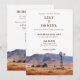 Este convite de casamento elegante com uma cena de montanhas de rancho de cowboy ocidental pode ser personalizado com suas informações em tipografia elegante e o código QR do site do seu casamento no verso. Projetado por Thisisnotme©