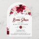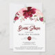 Código QR convites de chá de panela florais de cor d'água, tudo-em-um, burgundy e rosa. Personalize nomes, datas e informações.