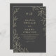 Convide seus hóspedes com esta cinza de carvão QR e convite para casamento de folhas mínimas de ouro. Apresentando uma elegante cinza de carvão, sotaques elegantes de folha de ouro e uma tipografia moderna minimalista, esta design combina a sofisticação do eterno com a conveniência contemporânea. O código QR integrado facilita para os convidados o RSVP e o acesso instantâneo ao seu site de casamento. Perfeito para casamentos de gravatas negras, comemorações noturnas, ou casais que adoram papelaria neutra.