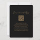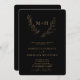 Monograma Botânico Elegante Laurel Wreath QR Code RSVP Dourado e Convite de Casamento Negro com Cantos Arredondados... A frente de nosso convite de casamento de cantos arredondados apresenta uma coroa de louros botânicos com folhas mostrando as iniciais do monograma da noiva e do noivo acima do texto de convite personalizado em serif de ouro e sans serif typografia em um fundo preto elegante. A parte traseira do convite exibe o código QR do seu site de casamento, bem como o próprio URL do site, permitindo que seus convidados facilmente RSVP on-line e visualizem todos os detalhes normalmente enviados em um pacote de casamento. O exemplo de código QR e todo texto de exemplo (além dos elementos de caligrafia) podem ser facilmente revisados com suas próprias informações sobre o modelo de personalização.