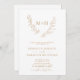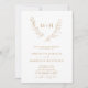 Monograma Botânico Elegante Laurel Wreath QR Code RSVP Dourado e Convite de Casamento Branco... A frente do nosso elegante convite de casamento monográfico apresenta uma coroa de louros botânicos com folhas mostrando as iniciais da noiva e do noivo acima do texto de convite personalizado em serif de ouro e sans serif tipografia num fundo branco nítido. A parte traseira do convite exibe o código QR do seu site de casamento, bem como o próprio URL do site, permitindo que seus convidados facilmente RSVP on-line e visualizem todos os detalhes normalmente enviados em um pacote de casamento. O exemplo de código QR e todo texto de exemplo (além dos elementos de caligrafia) podem ser facilmente revisados com suas próprias informações sobre o modelo de personalização.