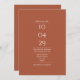 Um design moderno minimalista com sua data especial e detalhes de casamento definidos em tipografia clássica e chic em um fundo de terracota. Com os detalhes do seu site de casamento e o seu código QR no sentido inverso. Projetado por Thisnotme©