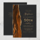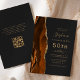 A borda esquerda deste convite de aniversário de 50 anos moderno e elegante apresenta uma borda de ágata em aquarela laranja queimada e ferrugem aparada com brilho falso dourado. O texto personalizável combina escrita à mão em cor dourada, fontes copperplate e itálico em um fundo preto de ardósia. Adicione instruções de RSVP no verso do cartão, juntamente com um código QR que os convidados podem escanear para responder online.