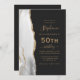 A borda esquerda deste elegante e moderno convite de aniversário 50º apresenta uma cinza e uma aquarela branca, borda agitada com brilho dourado. O texto personalizável combina manuscrito dourado, fontes em copperplate e itálico em um fundo preto de slate. Adicione instruções RSVP na parte traseira da placa, juntamente com um código QR que os convidados podem verificar para responder on-line.