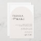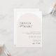 Este convite de casamento moderno tem curvas e cores neutras para invocar elegância e beleza. Com o seu guião escrito por chic e um rico fundo de arco creme, é certo que se destaca pela multidão e que useia os seus convidados. No verso, há um código QR e caixas de texto para fazer disto um convite de casamento.