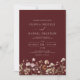 Convite Código QR de Burgundy Wildflower em um único casam