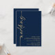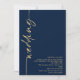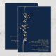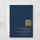 Caligrafia sofisticada Código QR Casamento Navy Dourado. Adicione o seu código QR ao site do seu casamento no verso, o que torna esta uma opção conveniente para os seus convidados responderem e verem todos os detalhes sem a necessidade de cartões separados de RSVP e detalhes. O conjunto de letras elegante é girado para o lado esquerdo, com todos os detalhes elegantemente à direita com muito espaço em branco para um visual contemporâneo. Personalize facilmente com seus detalhes. E altere a cor do texto e do fundo, se desejar, através da opção editar mais.