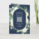 Convite Código QR de casamento azul marinho com foto flora