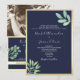 Capture a essência do romance moderno com nosso convite de casamento botânico elegante tudo-em-um, misturando charme boho com sofisticação em dourado e azul-marinho. Adornado com folhagens rústicas em aquarela, exala elegância atemporal. Seu toque personalizado - uma foto do casal - adiciona calor e intimidade, enquanto o código QR direciona os convidados para responder e explorar seu site de casamento de forma contínua. Com uma fonte de caligrafia simples que define o tom, convide seus entes queridos para se juntarem a você nessa jornada extraordinária.