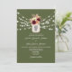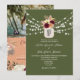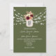 Convite de casamento elegante, chic, boho, floral aquarela, burgundy pêssego e verde com foto, site e código QR para rsvp.