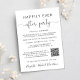 Fuga romântica elegante ou anúncio de casamento íntimo e convite para recepção ou festa de celebração de casamento. Na frente, "Festa Feliz para Sempre" está escrito em uma mistura de tipografia simples e um script elegante com floreios, e você pode personalizar sua mensagem e convite com mais detalhes, criar um código QR vinculado ao seu site de casamento para que os convidados o leiam para obter mais informações e responder online, e adicionar seus nomes em um script semelhante a uma assinatura. O verso apresenta sua foto de casamento favorita, seus primeiros nomes e as datas do casamento e da recepção.