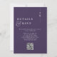 Este convite de casamento com monograma minimalista roxo pode ser personalizado com suas informações e código QR do site do casamento em tipografia moderna. Criado por Thisisnotme©