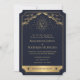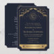 Adicione um toque de magia celestial ao seu grande dia! Estes convites de casamento góticos antigos apresentam um design de inspiração tarot com um sol radiante, lua, estrelas e nuvens em ouro contra um fundo azul marinho. A parte de trás apresenta os detalhes do seu casamento e um Código QR. Personalize-o para as suas necessidades. NOTA: O ouro apresentado nesta design NÃO é folha de alumínio real.