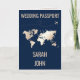 Design de convite de passaporte único e moderno de Savanamm, com mapa mundial na dentro de fotografia de frente e praia. Adicione sua foto e seu código QR.