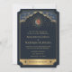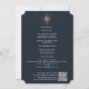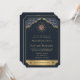 Adicione um toque de magia celestial ao seu grande dia! Estes convites de casamento góticos antigos apresentam um design de inspiração tarot com um sol radiante, lua, estrelas e nuvens em ouro contra um misterioso fundo azul marinho. A parte de trás apresenta os detalhes do seu casamento e um Código QR. Personalize-o para as suas necessidades. NOTA: O ouro apresentado nesta design NÃO é folha de alumínio real.