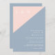 Este convite de casamento elegante, azul e cor-de-rosa, minimalista, pode ser personalizado com as suas informações na tipografia moderna e o seu website de casamento endereço QR no verso. Projetado por Thisnotme©