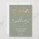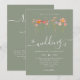 Convite de casamento Boho Fall Wildflower em verde sálvia, bege, terracota e laranja queimada com código QR do site de casamento e RSVP, uma mistura deslumbrante de charme outonal e sofisticação elegante. Este design de aquarela apresenta flores silvestres pintadas à mão em um vibrante prado de jardim, com uma rica paleta de laranja queimada, terracota, marrom, roxo, amarelo, coral, umber queimado, pêssego e rosa suave, capturando a calidez e a beleza da estação outonal em um fundo verde sálvia elegante.