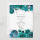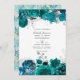 Teal - turquesa e o convite para o casamento floral de cor d'água prateada. Ideal para qualquer tema ou casamento de jardim. O código QR no verso direciona para o seu local de casamento onde o pessoas pode aprender mais e rsvp.