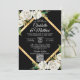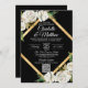 Convite Código QR de Casamento Floral Dourado Preto Preto
