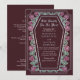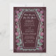 Faça uma declaração ousada de amor eterno. Este convite de casamento gótico apresenta 'Até a Morte nos Parte' em um quadro em forma de caixão, enfeitado com espinhos, rosas e sotaques prateados contra um fundo vermelho com seu próprio código QR na parte de trás do convite. Perfeito para uma comemoração romântica assombrosa! Personalize o texto, a fonte e a cor de fundo para se adequar às suas preferências de design. Correspondência de Itens em nosso compro para um tema completo de festa. Note que a prata do convite NÃO é uma folha real e é impressa em cores planas.