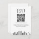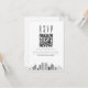 Um cartão de código de QR rsvp de casamento com uma bela linha estilizada representando a cidade de Houston, Texas. Substitua o código QR por um que apresente um link para o seu site para ajudar a facilitar a resposta ao evento de seu casamento para seus futuros convidados.