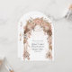 Coloque a palco para o seu casamento no tema ocidental com este maravilhoso convite com um arco floral rústico enfeitado com florais macios e verde na frente, aliado a uma porta de madeira saloon no reverso. A combinação perfeita de encanto rústico e conveniência moderna, este convite inclui um código QR para acesso rápido a RSVP. Ideal para casamentos ocidentais, rurais ou rurais, esta design capta o espírito do seu dia especial com elegância e charme.