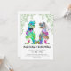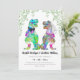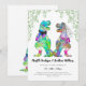 Deleite seus convidados com este divertido e colorido convite de casamento temático de dinossauros psicodélicos com noiva e noivo dinossauros divertidos e folhagens em aquarela. Fácil de personalizar com os nomes da noiva e do noivo, a data do casamento e todos os detalhes do local do casamento em tipografia moderna. Ilustrações divertidas do casal de T-Rex em tons de rosa, roxo, azul, verde, amarelo e laranja com folhagem de eucalipto. Arte original e única de dinossauros pela artista Catherine Sweetman.