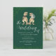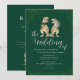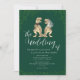 Convite de Casamento de Dinossauro Verde Esmeralda Escuro e Branco Divertido Design Moderno de Noiva e Noivo T-Rex