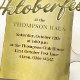 Esta design apresenta uma festa no outono de outubro Oktoberfest, uma simples celebração fofa minimalista, um festival festivo de comemoração bebidas, uma caneca de cerveja de álcool de cerveja Germán lager, água colorida, ouro de ouro giro, com um código QR para o site online URL compartilhando links, com na moda caligrafia, festa de adulto de cocktail se juntam, um copo de cerveja foam mug cerveja espuma, um convite para o outono de Octoberfest