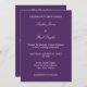 Com fontes elegantes e sofisticadas e um layout tradicional em um fundo roxo escuro, este é um convite de casamento bonito com um toque moderno - o verso inclui um código QR que facilita a leitura pelo convidado usando o celular para visitar o site do seu casamento. O convite tem espaço no verso para informações como detalhes da recepção, detalhes de hospedagem e também uma nota convidando o convidado a visitar o seu site para mais informações ou para responder online. Todo o texto é fácil de personalizar usando o modelo de personalização online antes de fazer o pedido. Uma vez que você tenha personalizado todo o texto, caso precise fazer ajustes avançados, como ajustar o layout, por favor, role a página até o botão "Editar usando a Ferramenta de Design" para "personalizar ainda mais".