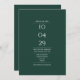 Um design moderno minimalista com sua data especial e detalhes do casamento, em tipografia clássica e chic em um fundo verde esmeralda. Com os detalhes do seu site de casamento e o seu código QR no sentido inverso. Projetado por Thisnotme©