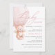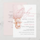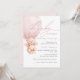 Urso de pelúcia em aquarela fofo e adorável em um balão de ar quente em tipografia moderna e manuscrita para convite de chá de bebê feminino com informações detalhadas no verso e código QR para registro.