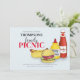 Hambúrguer Whimsical, hotdog, ketchup e mostarda. Um piquenique divertido, churrasco ou cartão postal de bolacha. Este é um convite excelente para reuniões familiares, festas de aniversário e festas ao ar livre. Com um design bonitinho e divertido com um padrão de toalha vermelha de gingham. Esta divertida e caprichosa design apresenta uma moderna reunião minimalista da família de piquenique, com um código QR nas redes sociais Facebook, uma divertida tradição de biscoitos de verão, um retrato fofo de CHURRASCO de churrasco churrasco, uma vintagem de cachorro-quente cheeseburger, com um desenho chetchup de mostarda hotdog, um roteiro de caligrafia comida gingham, uma sausinha idade ao ar livre do picnic chef grill, uma simples ilustração minimalista, um chetchup caprichoso e mostarda