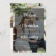 Um convite de casamento moderno e moderno, de dois lados, mostrando suas informações de casamento sobre uma de suas fotos favoritas com uma camada preta transparente, realçada por um roteiro elegante e branco. Facilmente personalizável com seus detalhes da cerimônia de casamento em branco para um olhar romântico, porém moderno e na moda. A parte de trás do cartão apresenta uma segunda imagem, as instruções de RSVP online e a data de vencimento, um Código QR personalizável para direcionar seus convidados para seu site de casamento, seus monogramas e sua data de casamento.