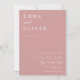Este convite apresenta uma fonte de tipografia serif e caligrafia em bloco, limpa e simples, num fundo cor-de-rosa empoeirado. A simplicidade e a design limpa deste convite funciona bem com todos os temas de casamento e definitivamente uma adição excelente ao seu casamento. Tente se tornar ecológico com este convite moderno, tudo em um, ecológico, reduzindo o RSVP adicional e os cartões de detalhes. Basta adicionar seu próprio código QR à parte traseira do convite para seus convidados para RSVP e descobrir mais informações sobre seu casamento. Personalize os nomes e o texto em apenas alguns passos fáceis e personalize o cartão de convite com sua foto do casal feliz para lhe dar um toque exclusivo e pessoal. Note-se que a elegante caligrafia dos termos "e" e "detalhes + rsvp" não pode ser editada, suprimida ou movida. Eles estão consertados. Se precisar alterar a cor, você pode personalizar o cartão de convite. Você pode personalizar e personalizar o convite para ajustado das suas necessidades de evento de casamento e clicar em personalizar o convite. Você pode personalizar facilmente este convite com seu próprio texto e compartilhá-lo com seus convidados digitalmente — seja através de texto, email ou mídia social. Se preferir, você também tem a opção de enviar uma versão impressa para seus convidados. Ou, você pode fazer ambos — enviar uma versão digital e acompanhar com uma cópia impressa para um toque pessoal!