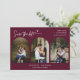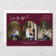Este convite para salvar a data apresenta um elegante estilo moderado e minimalista de uma colagem de três (tri) fotos em forma de arco com uma caligrafia moderna do texto "Salvar a Data" e fontes elegantes da Serif para um olhar limpo minimalista e moderno sobre um fundo burgundy, que é uma bela maneira de informar sobre seu próximo casamento. Anuncie à sua família e amigos que vai se casar com este convite e adicione um toque pessoal com belas fotos de você e sua próxima metade melhor. A simplicidade desta design adiciona um toque de elegância ao seu casamento. Funciona bem com muitos temas de casamento e definitivamente um excelente extra para o seu casamento. Basta personalizar os nomes e o texto em alguns passos fáceis e personalizar o cartão de convite com sua foto do casal feliz e substituir o Código QR pelo seu. Observe que o texto e o coração "Salvar a Data", juntamente com outros trabalho de arte gráficos e elementos não podem ser editados, alterados ou excluídos. Se precisar alterar a cor, você pode personalizar o cartão de convite. Você pode personalizar e personalizar o convite para ajustado das suas necessidades de evento de casamento e clicar em personalizar o convite. EXEMPLO: Se você quiser obter um exemplo deste convite, poderá solicitar apenas UM cartão (alterar a quantidade para UM) e selecionar suas preferências para ver como ele é exibido e se sente. Pode consultar o resto dos nossos produtos no Zazzle em https://www.zazzle.com/store/1creativemastermind/products Se quiser consultar o nosso compro sobre o Etsy, pode consultar 1CreativeMastermind.etsy.com