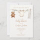 Este convite de chá de bebê fofo apresenta um varal de roupas de bebê e pode ser personalizado com seus detalhes em uma tipografia elegante. O verso apresenta sua foto especial e um código QR de lista de presentes. Criado por Thisisnotme©