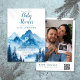 Este convite de chuveiro de bebê montanha aquarela rústico boho elegante pode ser personalizado com suas informações em tipografia chic e uma foto especial no verso, junto com o código QR do seu registro. Projetado por Thisisnotme©