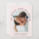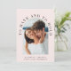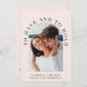Convite moderno para casamento de rosas claro multifunções, com a sua foto em um quadro de arco e "Ter e segurar" em tipografia elegante. Sob sua foto, adicione seus nomes, data do casamento e local. No verso, personalize seu convite com mais detalhes em uma simples tipografia e insira seu endereço de site de casamento para criar um código de QR digitalizável para seus convidados digitalizarem para RSVP on-line e obter detalhes adicionais de casamento, como acomodações.