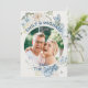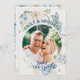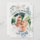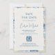 Romântico Azul Foto Floral Código QR Casamento Salvamento O Cartão de Data contém celeste azul empoeirado e flores delfinium com verde eucalipto acentuado com borboletas. Adicione sua foto favorita e seu texto personalizado na elegante tipografia moderna do roteiro, com seu site de casamento e seu código QR. Projetado para você pelo Evco Studio www.zazzle.com/store/evcostudio