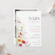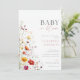 Este convite de chá de bebê bonito e elegante apresenta flores silvestres e pode ser personalizado com seus detalhes em tipografia elegante. O verso apresenta sua foto especial e um código QR de lista de presentes. Criado por Thisisnotme©