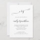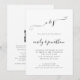 Convite de casamento em preto e branco ou qualquer cor com código QR em Elegant Script. Com um código QR para o site do seu casamento no verso para que seus convidados possam responder e ver todos os detalhes online sem a necessidade de envelopes separados. Seu código QR será gerado automaticamente para atualizar o código de exemplo no design, quando você simplesmente alterar a URL de exemplo no modelo com a URL do site do seu casamento. Um design totalmente personalizável com suas iniciais no topo em um script elegante com floreios. Personalize facilmente o texto, você também pode clicar em Editar mais para alterar as cores do texto e do fundo, se desejar.