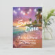 Um código de QR moderno salva a data do convite de casamento combinando elegância, e funcionalidade, fazer que seja uma excelente escolha para planejar o casamento de destino de praia tropical. Os elementos do tema da praia do pôr do sol tropical dão o tom para uma celebração verdadeiramente romântica e inesquecível. Adicione o URL do seu site de casamento que atualizará o código QR (ou exclua-o se não for necessário). Os convidados podem simplesmente digitalizar o código QR para acessar uma variedade de informações sobre seus detalhes de casamento, atualizações, etc. Clique em personalizar/personalizar para edição adicional.