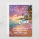 Um código de QR moderno salva a data do convite de casamento combinando elegância, e funcionalidade, fazer que seja uma excelente escolha para planejar o casamento de destino de praia tropical. Os elementos do tema da praia do pôr do sol tropical dão o tom para uma celebração verdadeiramente romântica e inesquecível. Adicione o URL do seu site de casamento que atualizará o código QR (ou exclua-o se não for necessário). Os convidados podem simplesmente digitalizar o código QR para acessar uma variedade de informações sobre seus detalhes de casamento, atualizações, etc. Clique em personalizar/personalizar para edição adicional.