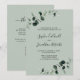 Convite de Recepção de Casamento com Código QR e Folhas de Eucalipto em Tom de Sage... Nosso convite de recepção de casamento botânico em tom de sage apresenta ramos elegantes de eucalipto com folhas em tons de sage e esmeralda criando uma borda natural para o texto do convite. A parte de trás do cartão em sage contém o URL do seu site de casamento e um exemplo de código QR que você pode facilmente substituir com suas próprias informações ao revisar o texto. Todo o texto de exemplo pode ser facilmente revisado com seus próprios detalhes no modelo de personalização. Este convite de recepção em estilo moderno foi projetado para ser elegante e econômico em tempo, criado especialmente para noivas atarefadas.