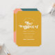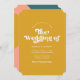 Este simples convite para casamento, em na moda, apresenta fotografias desenhadas na frente sobre um fundo de cor personalizado (mostrado em amarelo brilhante ouro). O dorso contém um design geométrico moderno, desenhado à mão, em azul escuro, cor de laranja, pêssego, ouro amarelo e amarelo-lilás claro/roxo. O verso também contém um modelo de código QR para direcionar convidados para seu site de casamento. Simplesmente Personalize o texto ou exclua-o, se não desejar.