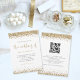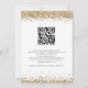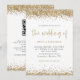Bordas de Confetes Brilhantes em Dourado Script Casamento. Um conjunto elegante de tipografia é em dourado para o título principal O Casamento de complementando o resto do texto que você pode facilmente personalizar, com bordas de confetes brilhantes dourados na parte superior e inferior e também no verso. Adicione seu código QR ao site do seu casamento no verso, o que torna esta uma opção conveniente para que seus convidados respondam e vejam todos os detalhes sem a necessidade de cartões de RSVP e detalhes separados.